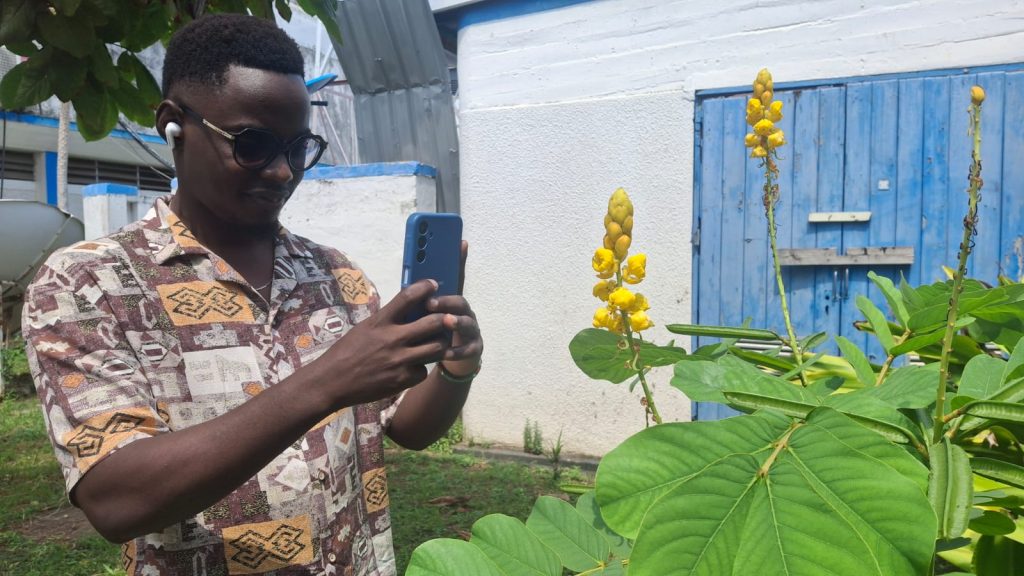 Denis Somba, a content creator from Mombasa who went through a successful surgery to correct retinal detachment uses his phone to show his eyes sight has been fully after the interview.